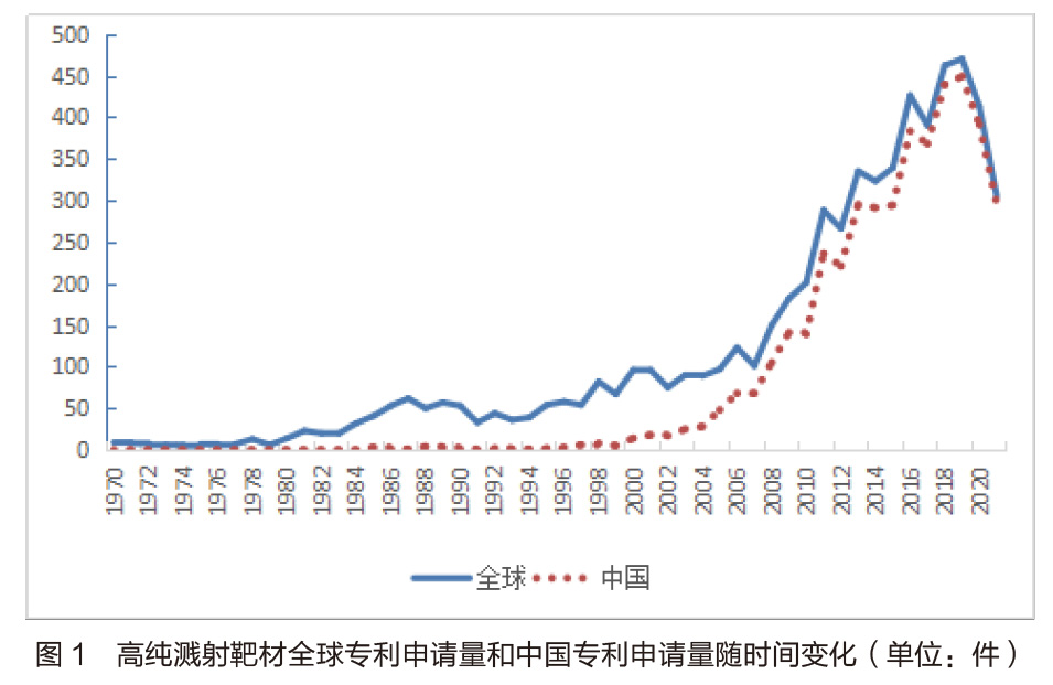 步增加。21 世紀(jì)初我國(guó)的相關(guān)研究才開(kāi)始起步,前期主要處于探索階段,2008 年全球性經(jīng)濟(jì)蕭條,導(dǎo)致靶材供貨減少和市場(chǎng)需求疲軟,全球?yàn)R射靶材專利申請(qǐng)量波動(dòng)不大,而我